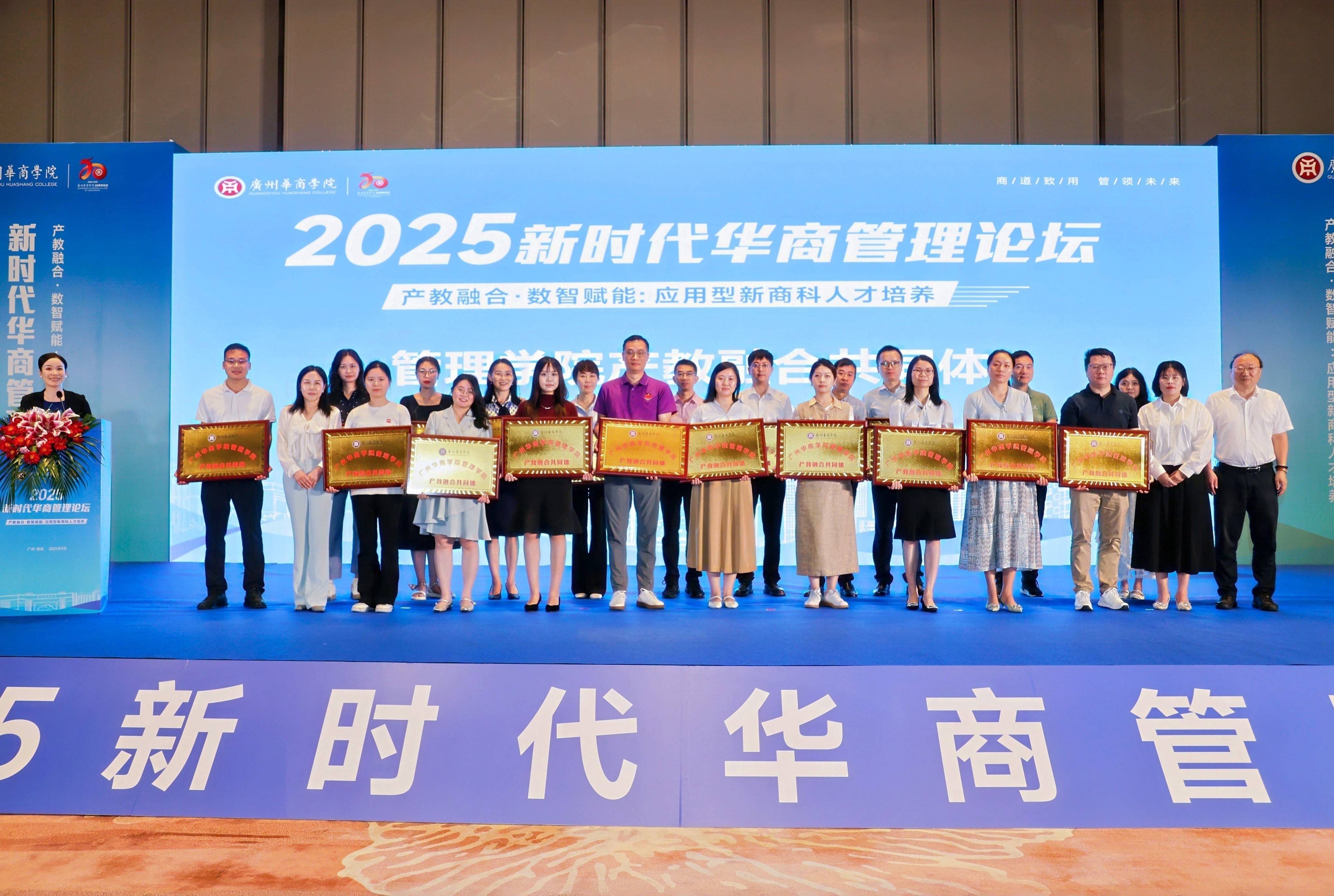 在与会嘉宾的共同见证下,论坛举行了简朴而庄重的授牌仪式。广州华商学院正式授予傲信背调公司“广州华商学院管理学院产教融合共同体”牌匾。